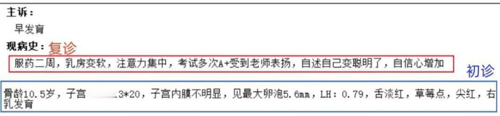 第一个小一又友,9岁,来看早发育,骨龄10.5岁,子宫:26*13*20,子宫内膜不较着,见最大卵泡5.6mm,LH:0.79,舌淡红,草莓点,尖红,右乳发育,她还有少量过敏性鼻炎,平淡容易外感。