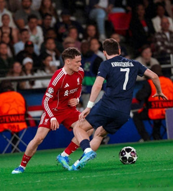 第32分钟的期间,利特浦突围流毒,给了克瓦拉茨赫利亚再次轰门的契机,可惜角度太正莫得命中。半场限制的期间,登贝莱在禁区无东说念主盯防下射门被门将充公。半场利物浦莫得1脚射门。