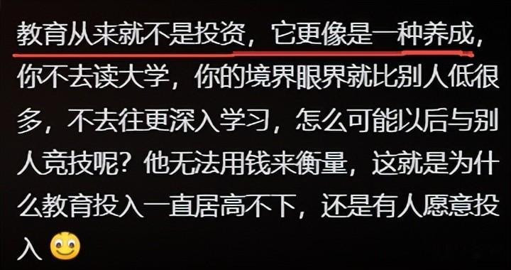 教悔不是投资,是养成。莫得大学,有的事真实难以达到更高意境,花钱买不到。