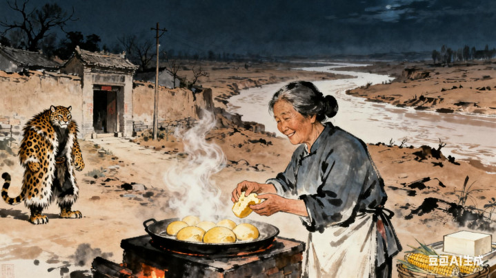 王婶蓦地冲进来,把滚热的苞谷馍塞进豹皮领口。