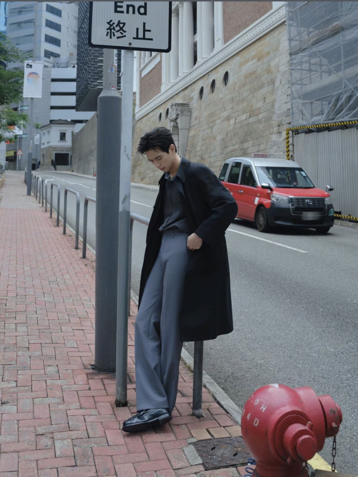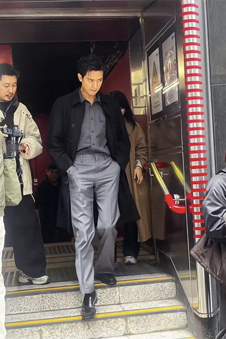21点app 李现香港街头街拍被偶遇, 穿长款大衣平底鞋好高好瘦, 气质真好呀