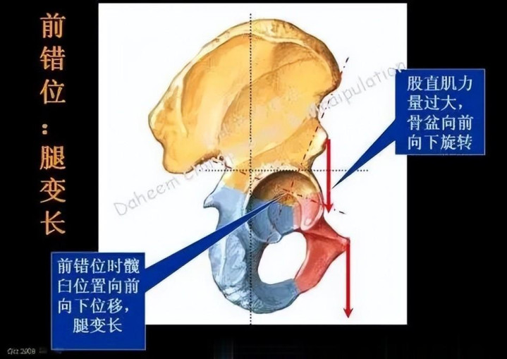 骨盆移位后,错位的一侧下肢肌力也相应的发生变嫌。平时东说念主伏卧时,双下肢伸直,两侧足呈对称外翻状。当一侧骶髂关节上前或向后移位时,该侧足便成外旋或内旋状,使也曾外旋的足作念内旋会感到穷困。使也曾内旋的足作念外旋也会感到穷困。