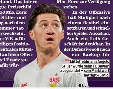 在锋线上,斯图加特正在寻找别称多面手且速率快的球员。租出球员亦然一个可能的聘请。