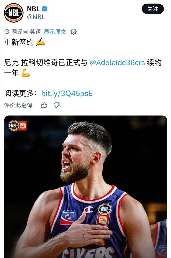 拉科塞维奇在好意思国时间4月13日与澳洲NBL联赛的阿德莱德36东说念主队(Adelaide36ers)完成了一年的续约。