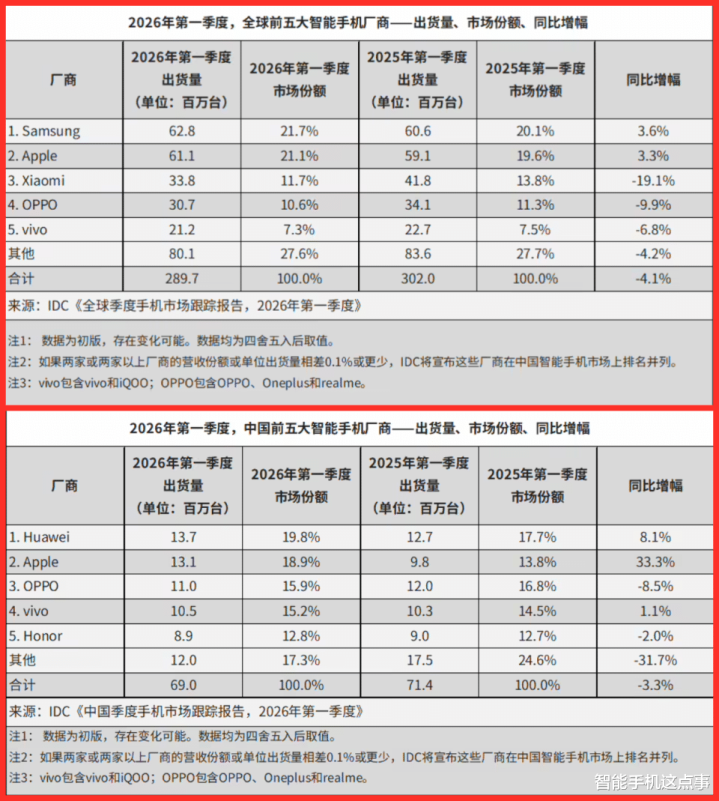 而近期,有媒体公布了2026年Q1全球智高手机出货量阐发,这便是全球销量,但这也仅仅一种,巧合候还会有激活量的手机家具榜单。