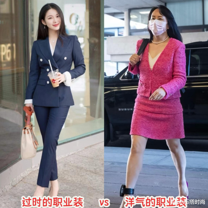 孟晚舟的做事装穿搭之是以漂后,就在于她不局限于基础的深色系,会挑战亮色和彩色的单品,比如之前她穿的孤独玫红色小香风套装,具有做事装的干练,也有极高的辨识度和前锋感。