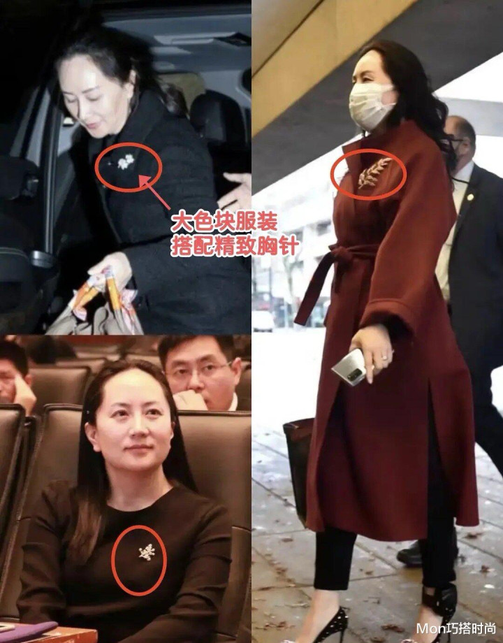 更蹙迫的是,孟晚舟遴荐的配饰也很负责,齐是实用性和好意思不雅性并存的,比如胸前的概述胸针,磋议工整概述,搭配大色块的衣饰又能培植概述度,不会显得突兀,比盲目穿金戴银更显耀气。