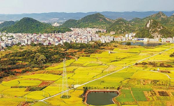 嘉禾的金色稻田让仓廪变得盈实。通信员摄