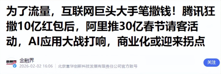 2026年春节这波AI“撒钱”,巨头越高调发红包,越诠释他们在争的不是短期拉新,而是将来十年的进口霸权。你认为红包是福利,他们算的却是弥远“税基”,税基便是你的活动与决策。