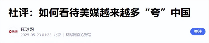 2.《社评:怎样看待好意思媒越来越多“夸”中国》2025-05-23 01:23 | 起首:环球网