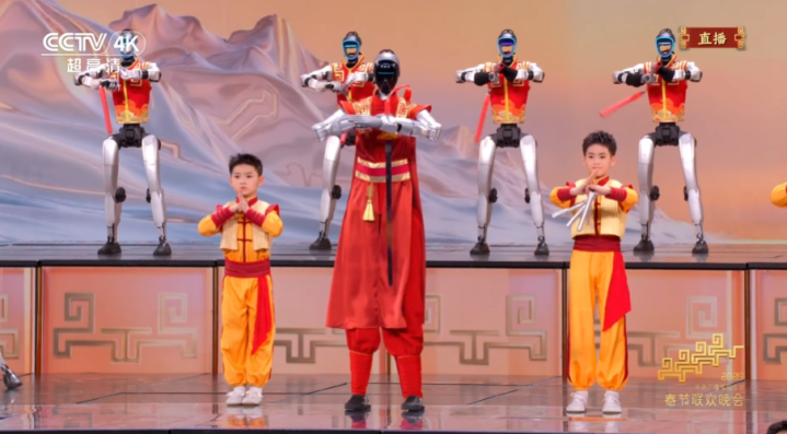 {jz:field.toptypename/}宇树科技旗下多台机器东谈主现身技击节目递次,与多名儿童进行了技击饰演,演示了翻跟头、舞棍、跑跳空翻、舞剑等特技。节目中,宇树机器东谈主步态平稳,舞姿灵动。
