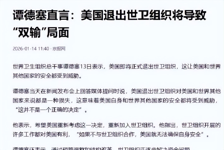 好意思国又退一个“群”,世卫发言东说念主:先把欠的2.6亿好意思元缴了,极目新闻,2026-01-22