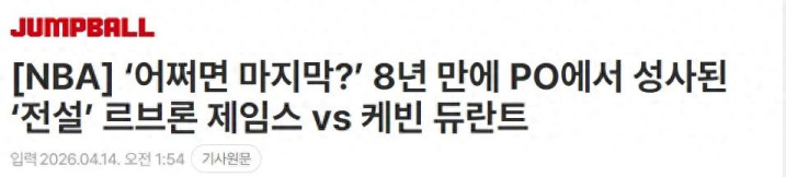 韩国媒体《跳球》杂志14日称,“简略这是临了一次?时隔8年季后赛献艺 ‘传说对决’——勒布朗・詹姆斯vs凯文・杜兰特。”不外本次对决的赛场略有不同,上一次二东说念主正面交锋,也曾在为赛季收官的NBA总决赛;而本赛季,他们将远隔动作西部第4(洛杉矶湖东说念主)与第5(休斯顿火箭)的中枢球员,在季后赛首轮张开较量。
